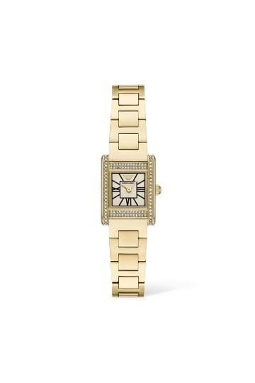 قلادة بحلية على شكل عجلة بشعار الماركة مرصعة بأحجار زركونيا مكعبة، نحاس مطلي بذهب