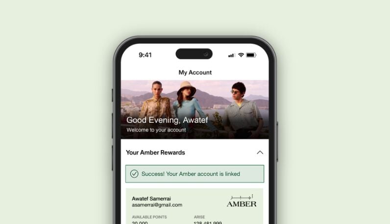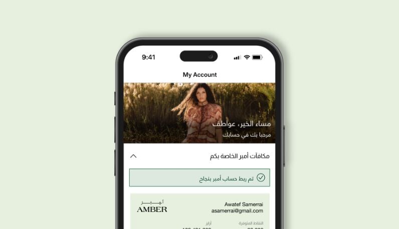 ستحصل على نقاط أمبر مُقابل كل عملية شراء. إضافة إلى المزيد من الامتيازات عند ارتقائك لمستوى أعلى ضمن برنامج أمبر.